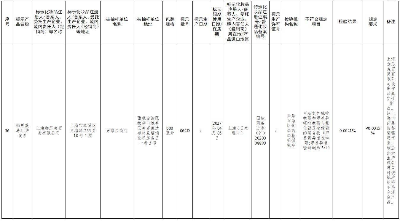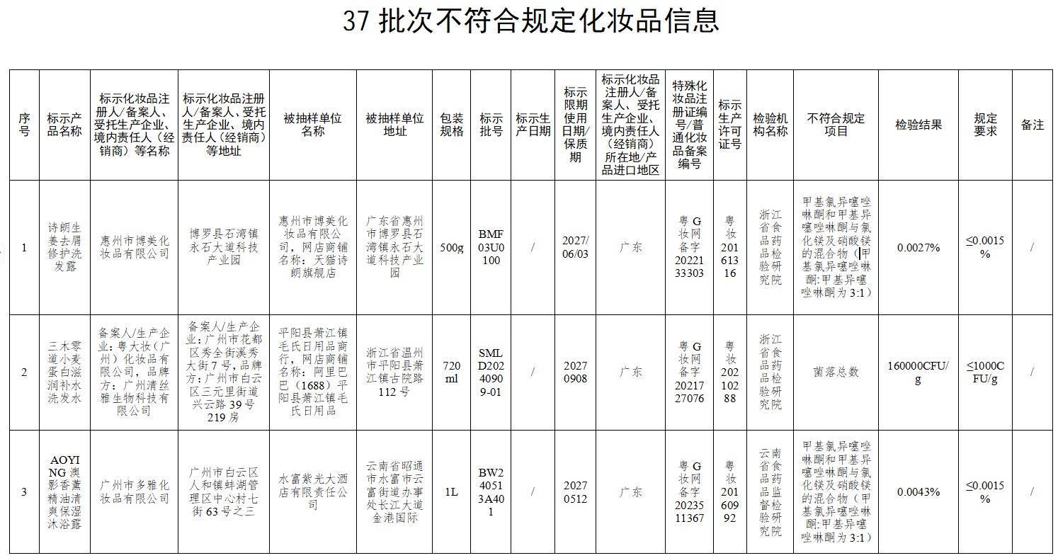 【大河财立方消息】据国家药监局,在2025年国家化妆品抽样检验工作中,经浙江省食品药品检验研究院等单位检验双融配资,产品标签标示名称为诗朗生姜去屑修护洗发露等37批次化妆品不符合规定。